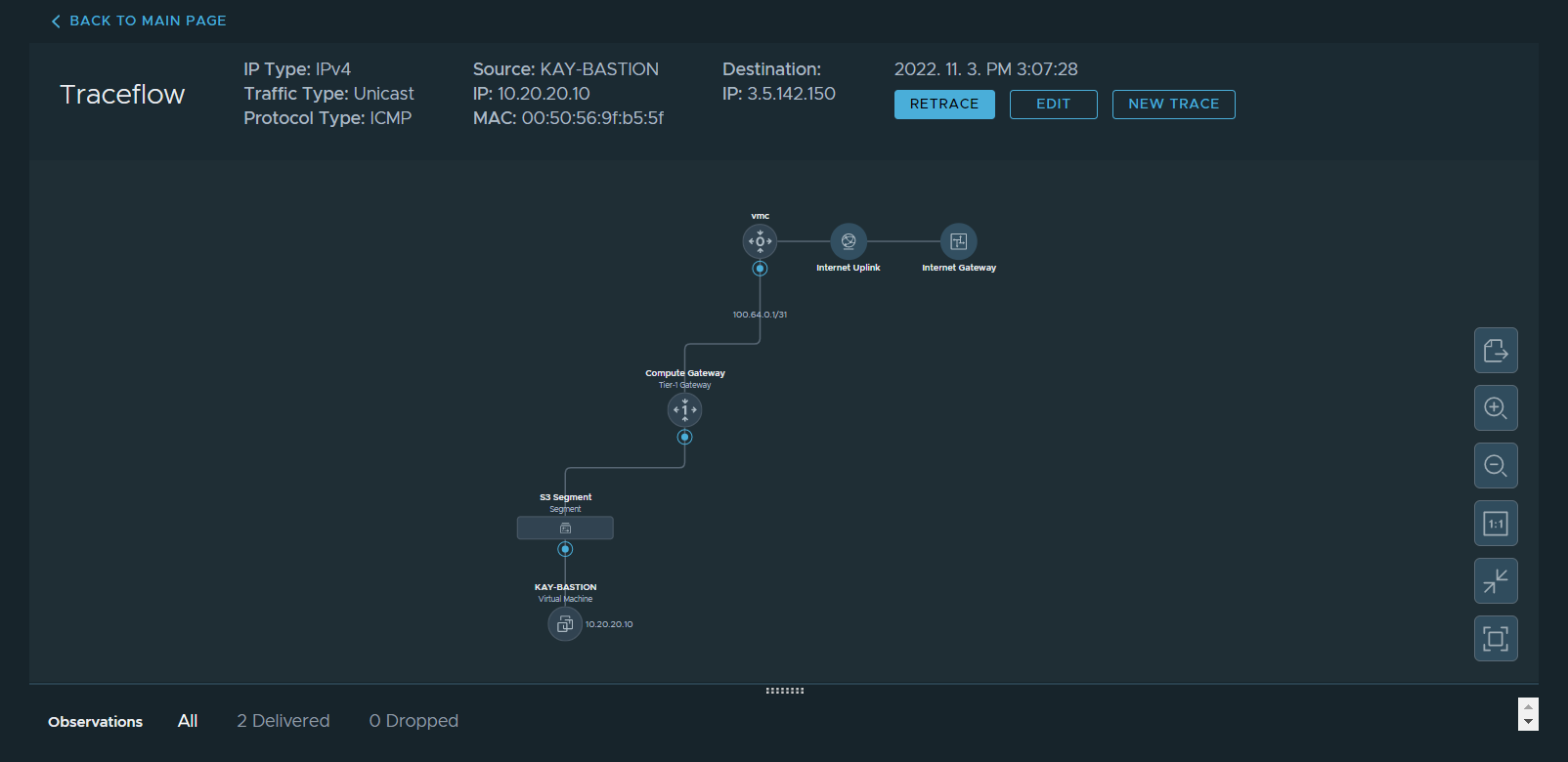 - VMC에서 Internet Uplink 통해 Internet Gateway 연결되는 Trace😮